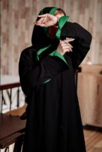 عبايه اخضر قدام الطرحه قماش التفته اخضر كلوش قماش العبايه كريب ملكي سعره